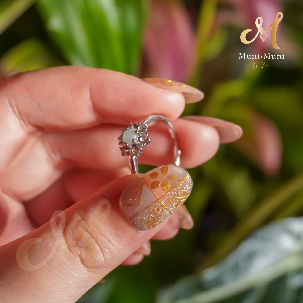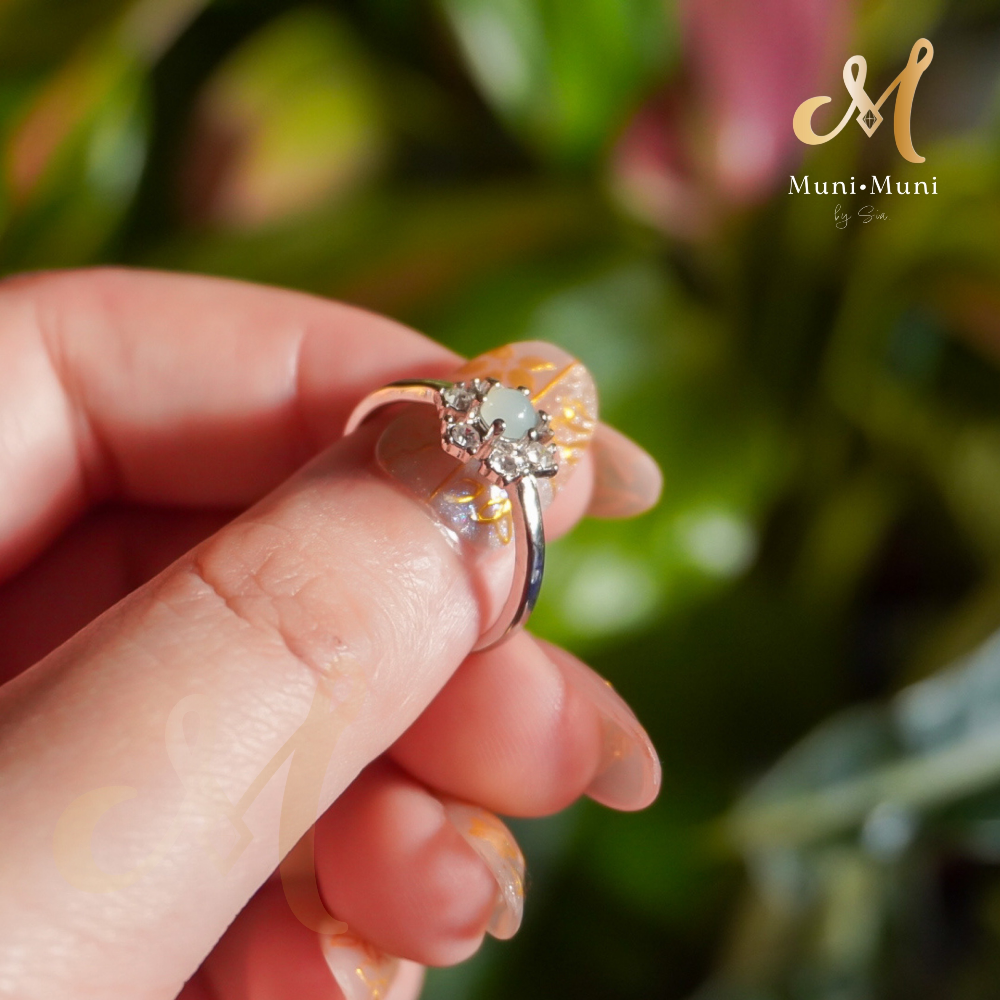 Blue Water Jade Stud Floral Style in Silver-Plated Ring