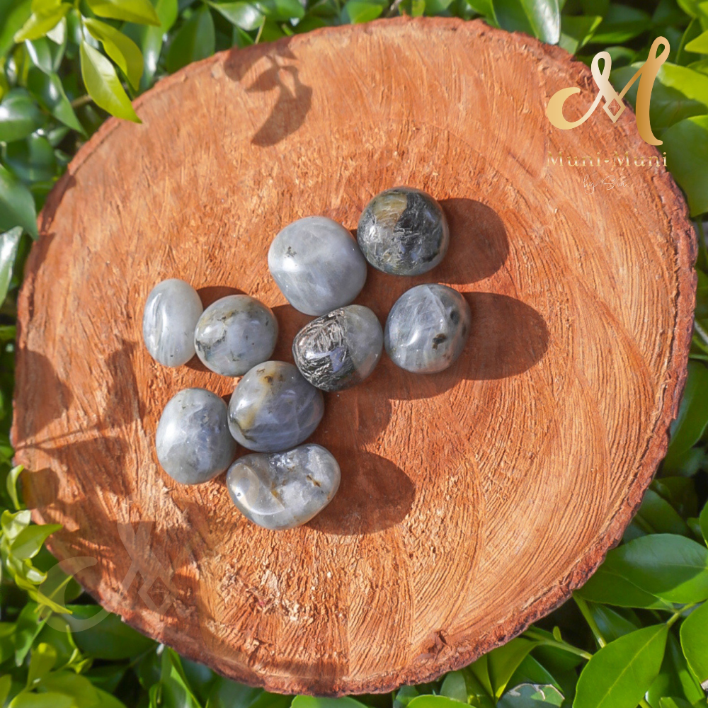 LABRADORITE: Enhances intuition to help you make the right decisions. Its colors come from light reflecting inside layers.
