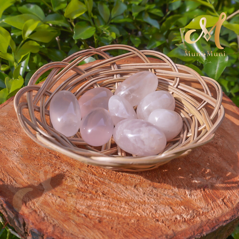 ROSE QUARTZ: Encourages all forms of love and self-care. Pink tones come from titanium and manganese.